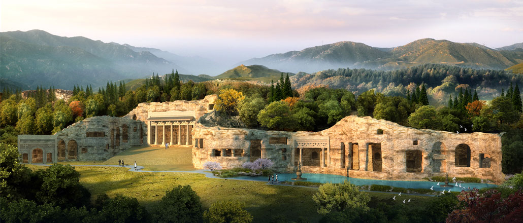 于长山寺西北侧,自藏经楼往西,是佛教一大壮景——罗汉世界景观。千余尊紫砂罗汉造像,置于依山而建的石窟中,栩栩如生,错落有致,蔚为壮观,是不可多得的佛教艺术瑰宝。